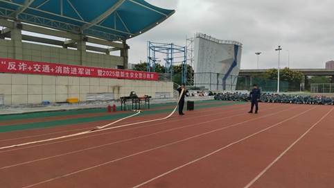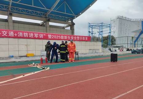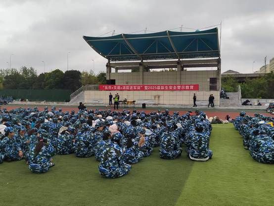 10月20日,我校在红角洲校区西区田径场举行“反诈+交通+消防进军训”暨2025级新生安全警示教育活动,红角洲校区25级全体新生参加活动。